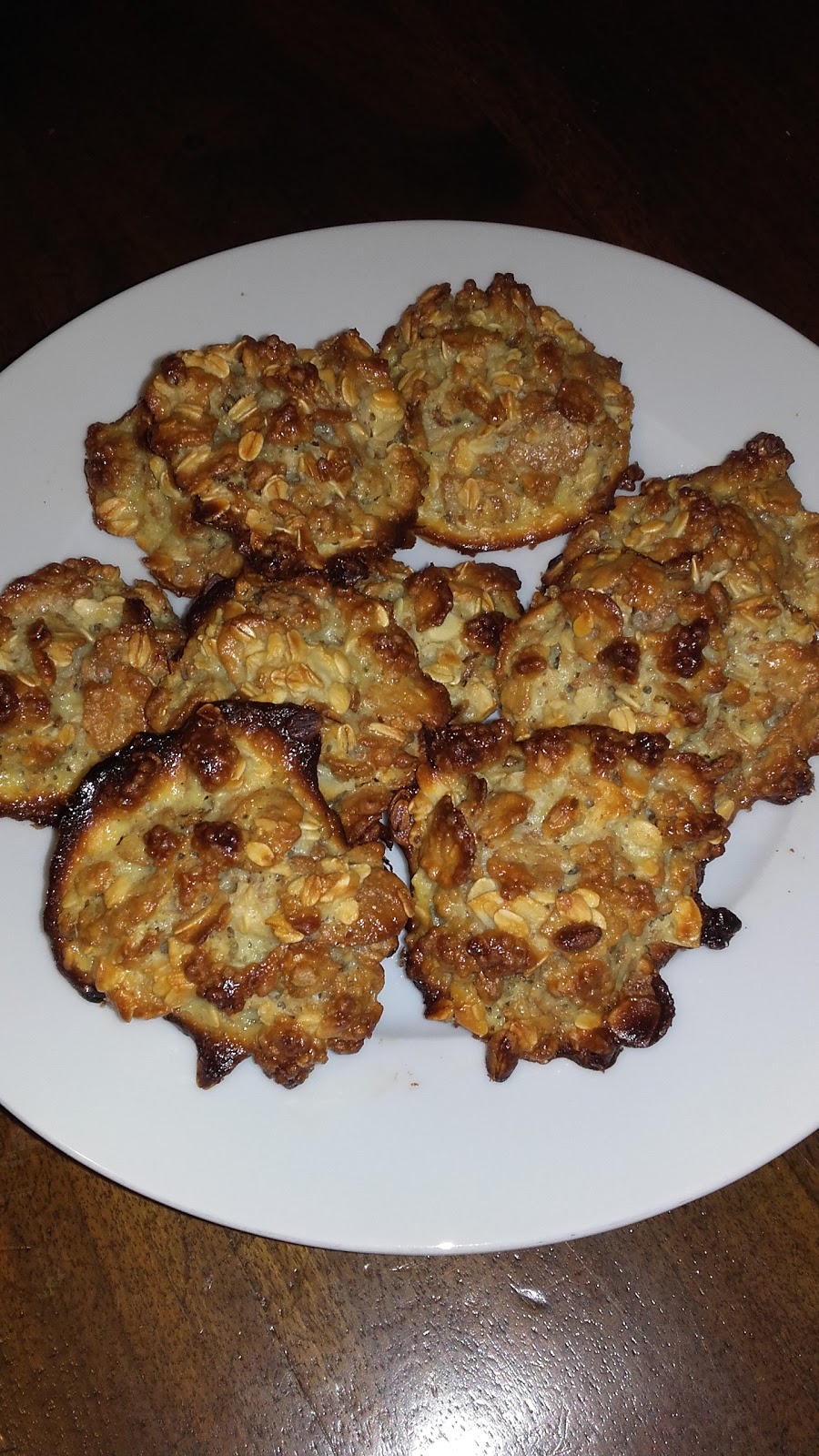 Ho mescolato 2 uova con 5 cucchiai di miele di acacia, latte di soia e tanti cereali misti fino ad ottenere un impasto omogeneo. Ho versato l'impasto a cucchiaiate su carta da forno e cotto per circa 25 minuti a 180 gradi.